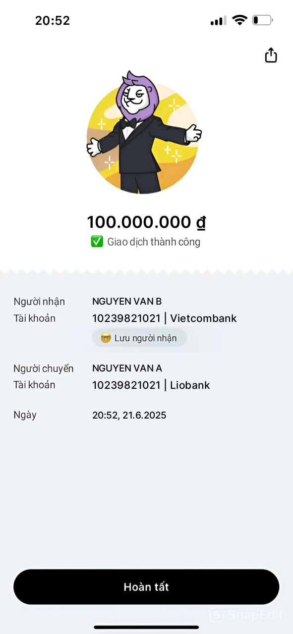 Fake bill chuyển khoản